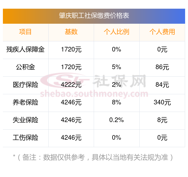2025社保交多少钱?下表是2025年肇庆社保费用明细参考,新社通app-社保缴费查询工具提供的最新数据如下: