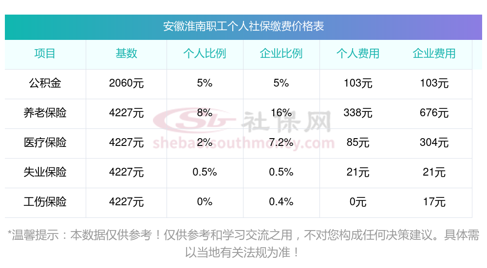 安徽淮南五险一金交多少钱一个月?下面和新社通-app小编一起来看看2024-2025年安徽淮南最低标准社保费用明细参考,新社通app-社保缴费查询工具提供的最新数据如下: