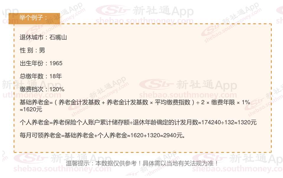新社通app养老金计算器计算所得: