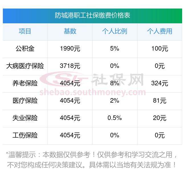 防城港社保多少钱一个月?下面和社保网-APP一起来看看防城港最低标准社保费用明细参考,新社通app-社保缴费查询工具提供的最新数据如下: