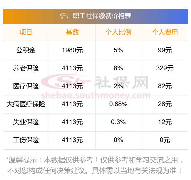 五险一金扣多少?忻州五险一金扣多少钱?下表是2024-2025年忻州社保费用明细参考,新社通app-社保缴费查询工具提供的最新数据如下: