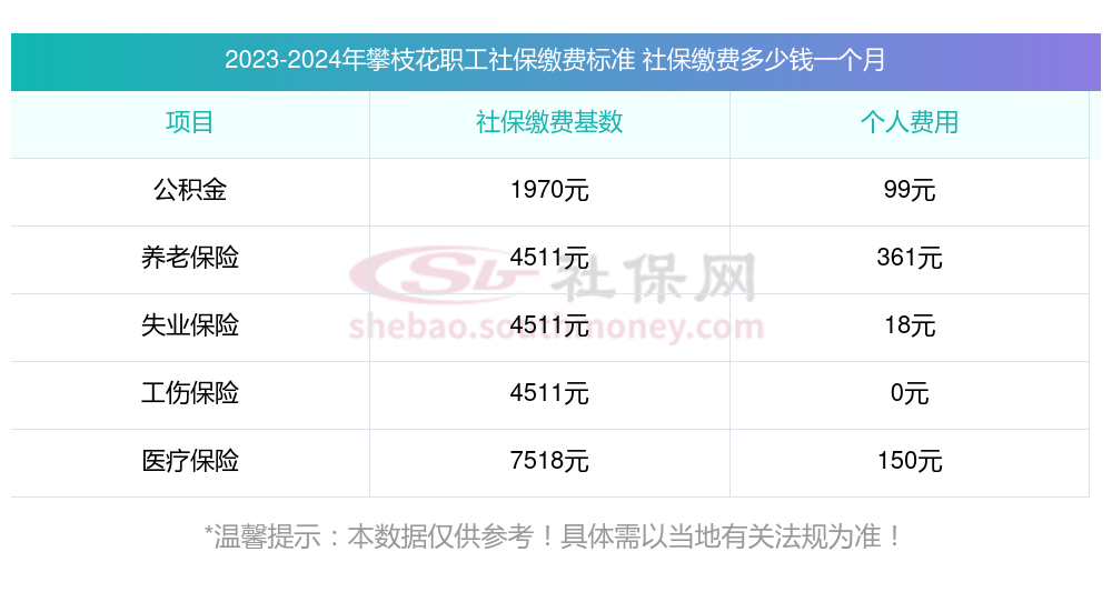 攀枝花2025年养老保险缴费标准是多少?下表是2025年攀枝花社保费用明细参考,新社通app-社保缴费查询工具提供的最新数据如下: