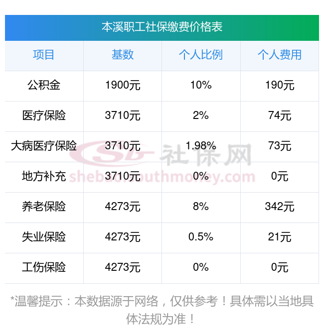 本溪2025年养老保险缴费标准是多少?下表是2025年本溪社保费用明细参考,新社通app-社保缴费查询工具提供的最新数据如下: