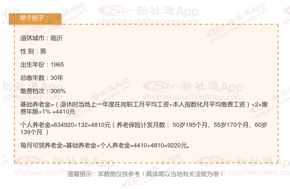 张某,临沂人,1965年出生,工龄30年,男性,缴费档次按300%。岁月流转,他终于迎来了自己的退休时光。借助新社通app养老金在线计算器计算所得: