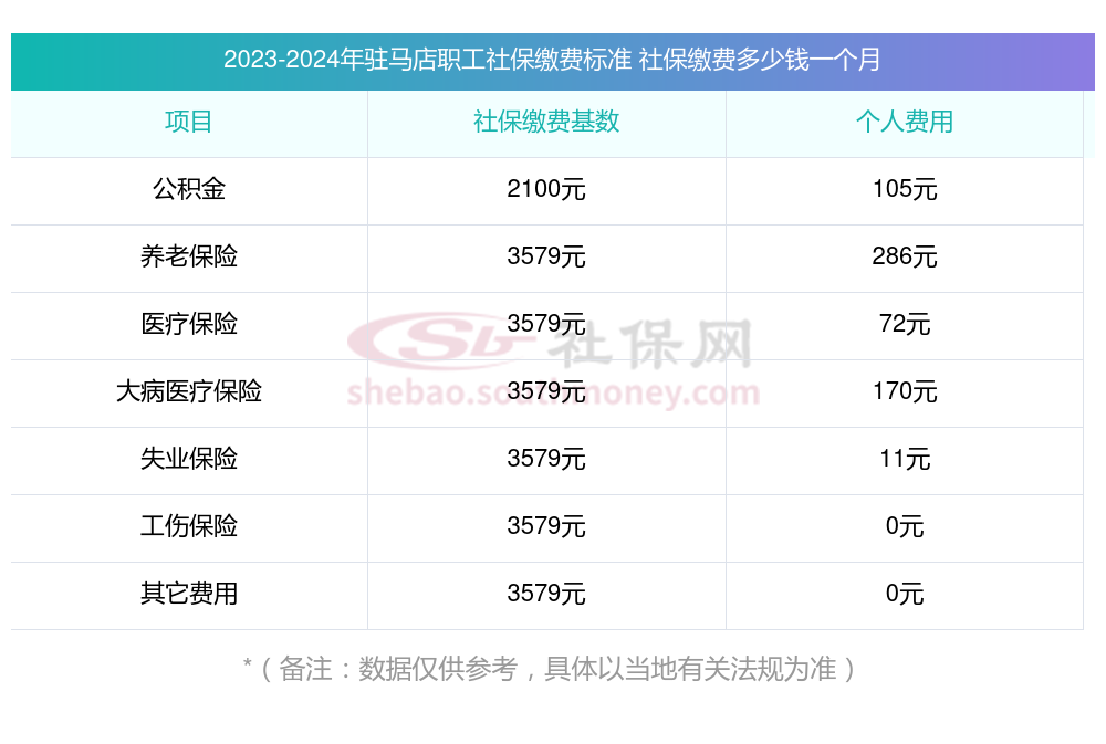 驻马店五险最少要交多少钱一个月多少钱?下表是2024-2025年驻马店社保费用明细参考,新社通app-社保缴费查询工具提供的最新数据如下: