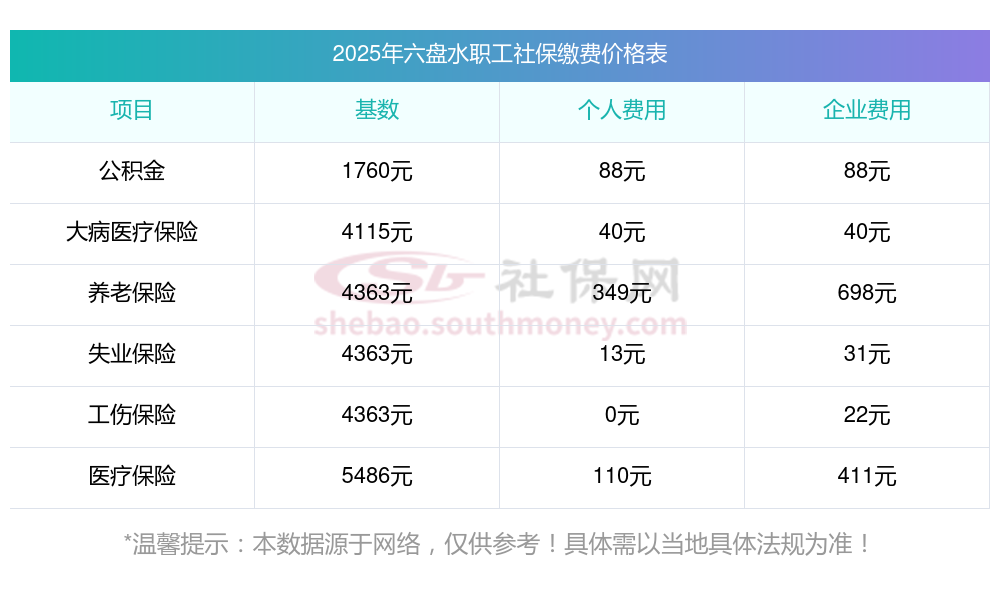 六盘水五险一金交多少钱一个月?和新社小编一起来看看2024-2025年六盘水最低社保费用明细参考,新社通app-社保缴费查询工具提供的最新数据如下: