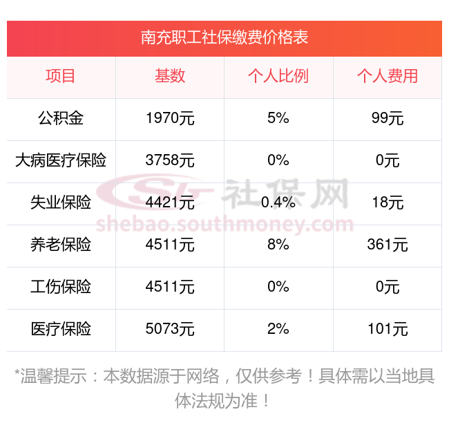 南充社保各基数的缴费比例是多少?和新社-app一起来看看,新社通app-社保缴费查询工具提供的最新数据如下: