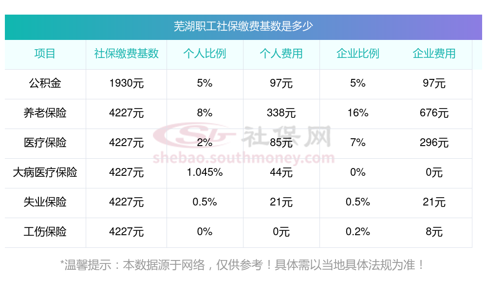 安徽社保个人怎么交费?下表是2024-2025年芜湖社保费用明细参考,新社通app-社保缴费查询工具提供的最新数据如下: