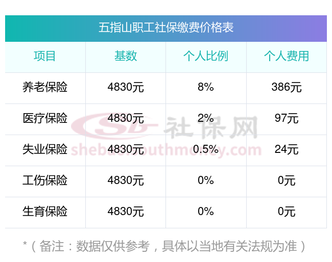 2025年五指山社保缴费最低基数及个人和单位具体是多少钱?下表是2025年五指山社保费用明细参考,新社通app-社保缴费查询工具提供的最新数据如下:
