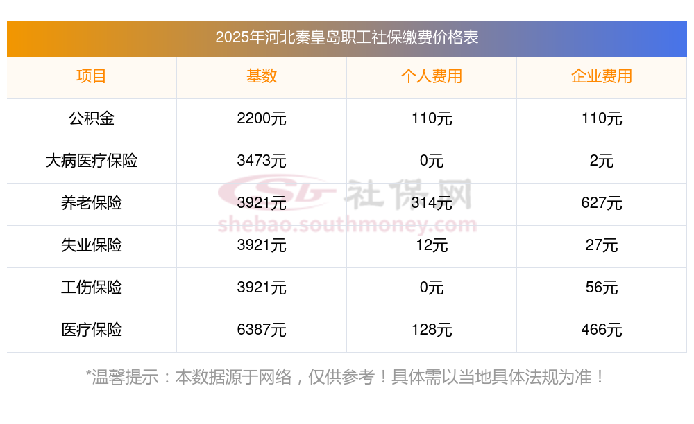 河北秦皇岛社保多少钱一个月?下面和新社通APP一起来看看河北秦皇岛最低标准社保费用明细参考,新社通app-社保缴费查询工具提供的最新数据如下: