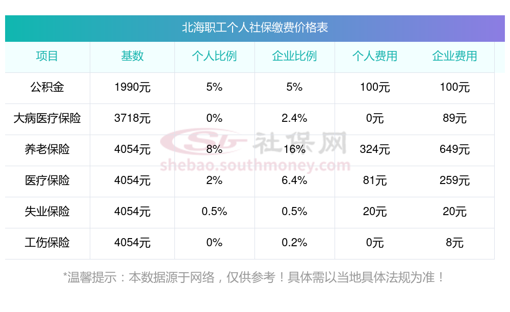 北海缴费社保比例一览 社保公司和个人各交多少?下表是2024-2025年北海社保费用明细参考,新社通app-社保缴费查询工具提供的最新数据如下:
