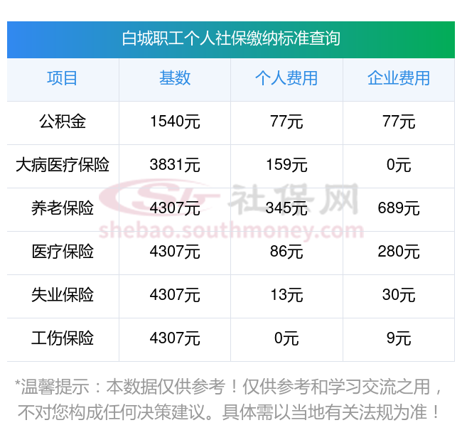 和新社APP一起来了解下:白城社保缴费比例是多少?2024-2025年白城社保费用明细参考,新社通app-社保缴费查询工具提供的最新数据如下: