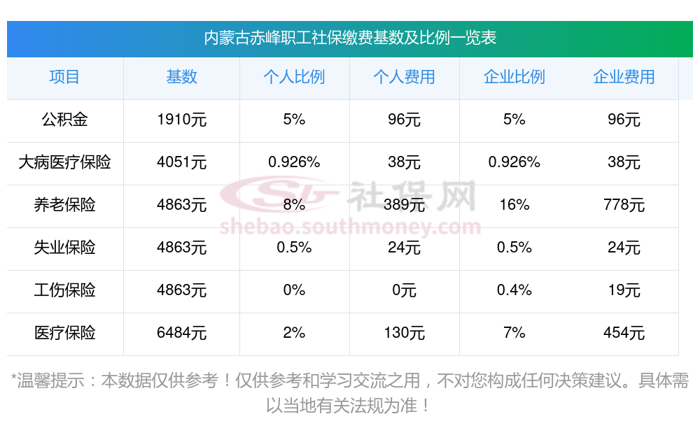 2025社保交多少钱?下表是2025年内蒙古赤峰社保费用明细参考,新社通app-社保缴费查询工具提供的最新数据如下: