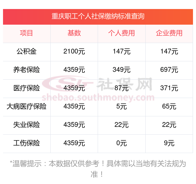 重庆五险一金交多少钱一个月?下表是2024-2025年重庆社保费用明细参考,新社通app-社保缴费查询工具提供的最新数据如下: