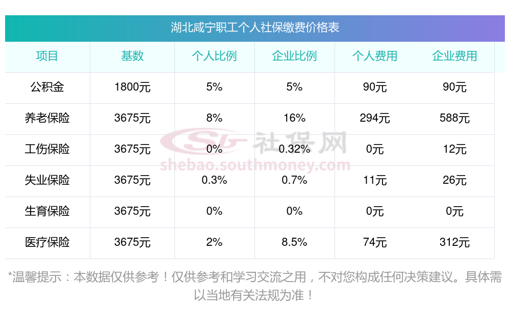 2025年湖北咸宁社保缴费多少钱?下表是2023-2024年湖北咸宁社保费用明细参考,新社通app-社保缴费查询工具提供的最新数据如下: