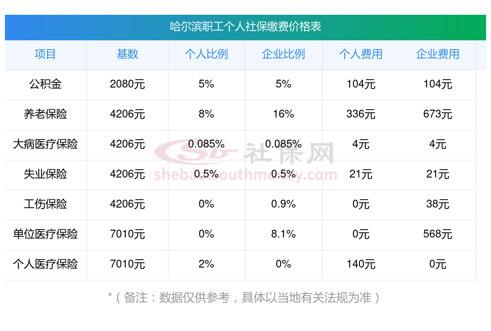 哈尔滨社保怎么算公司和个人各交多少?