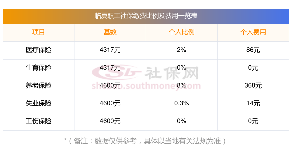 2025年临夏五险缴费标准是多少,2025年临夏社保缴费多少钱?下表是2025年临夏社保费用明细参考,新社通app-社保缴费查询工具提供的最新数据如下: