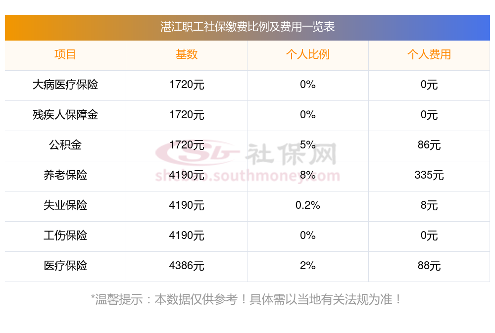 湛江社保各基数的缴费比例是多少?和社保网app一起来看看,新社通app-社保缴费查询工具提供的最新数据如下: