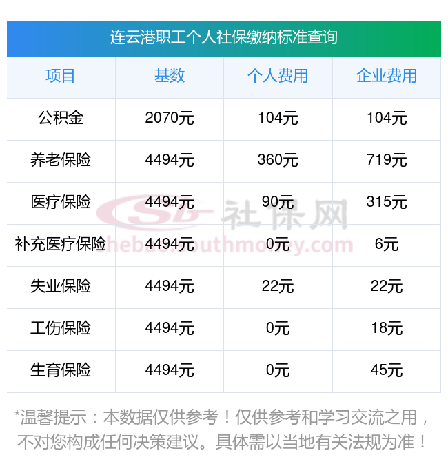 和新社通-app小编一起来了解下:连云港社保缴费比例是多少?2024-2025年连云港社保费用明细参考,新社通app-社保缴费查询工具提供的最新数据如下: