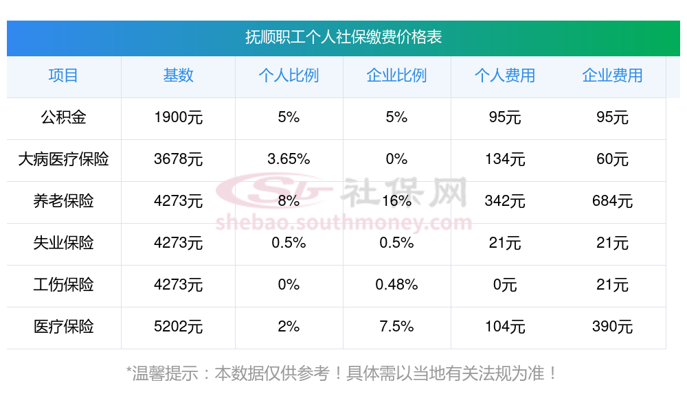 抚顺缴费社保比例一览 社保公司和个人各交多少?下表是2024-2025年抚顺社保费用明细参考,新社通app-社保缴费查询工具提供的最新数据如下: