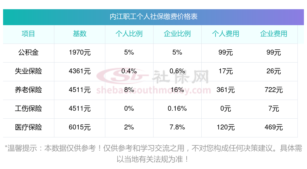 内江五险一金交多少钱一个月?和新社通小编一起来看看2024-2025年内江社保费用明细参考,新社通app-社保缴费查询工具提供的最新数据如下: