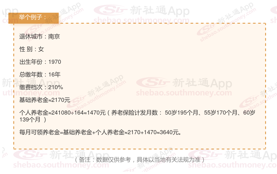 个人基础信息:女性,1970年出生,南京退休人士,拥有16年的缴费年限,缴费档次为210%。