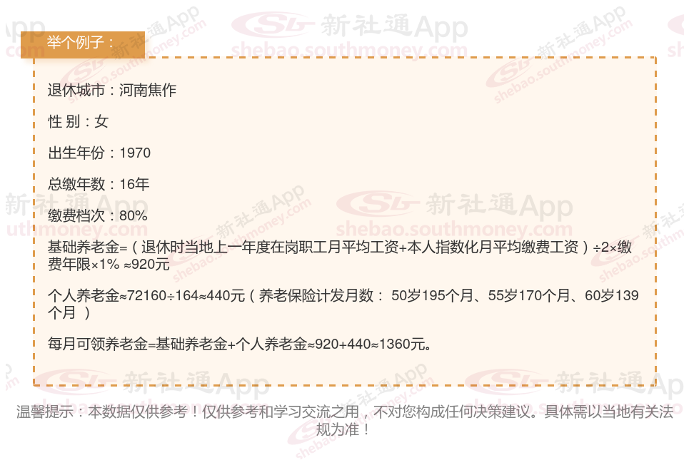 个人基础信息:女性,1970年出生,河南焦作退休人士,拥有16年的缴费年限,缴费档次为80%。