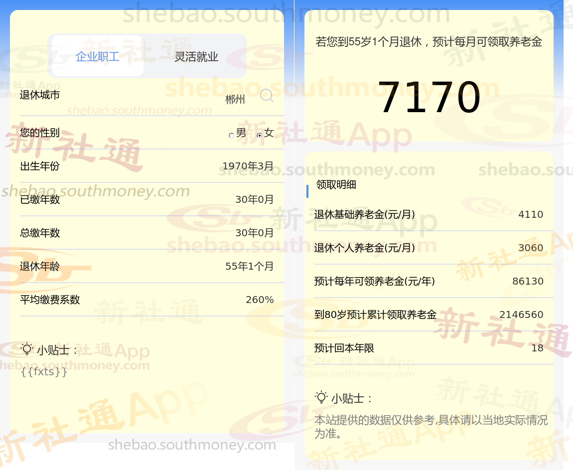 根据新社通app养老金计算器的估算: