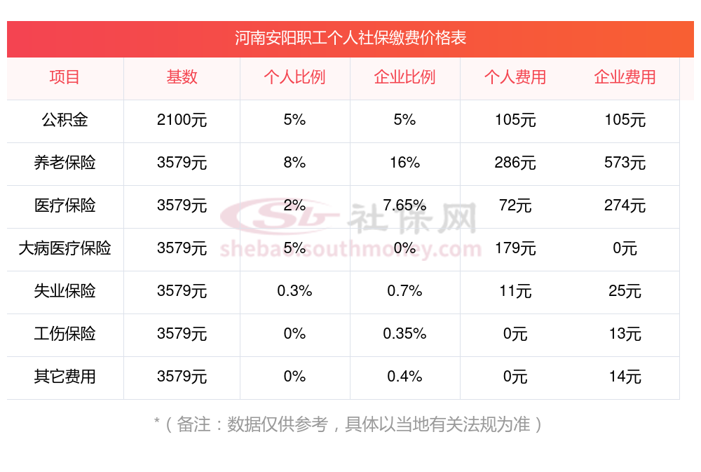 河南安阳社保一个月交多少钱,个人缴纳多少钱一个月?下面和社保网-APP一起来看看河南安阳最低标准社保费用明细参考,新社通app-社保缴费查询工具提供的最新数据如下: