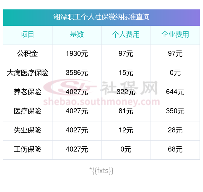 2025年湘潭社保缴纳比例,2025年湘潭社保缴费多少钱?下表是2024-2025年湘潭社保费用明细参考,新社通app-社保缴费查询工具提供的最新数据如下: