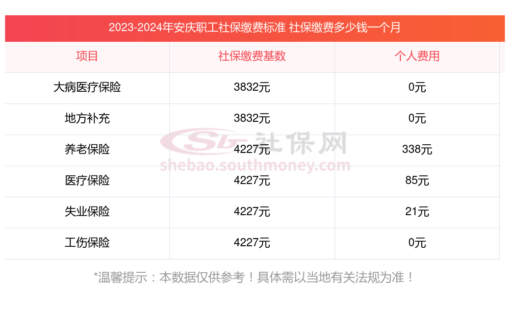 2025年安庆5险缴费标准,2025年安庆社保缴费多少钱?下表是2025年安庆社保费用明细参考,新社通app-社保缴费查询工具提供的最新数据如下: