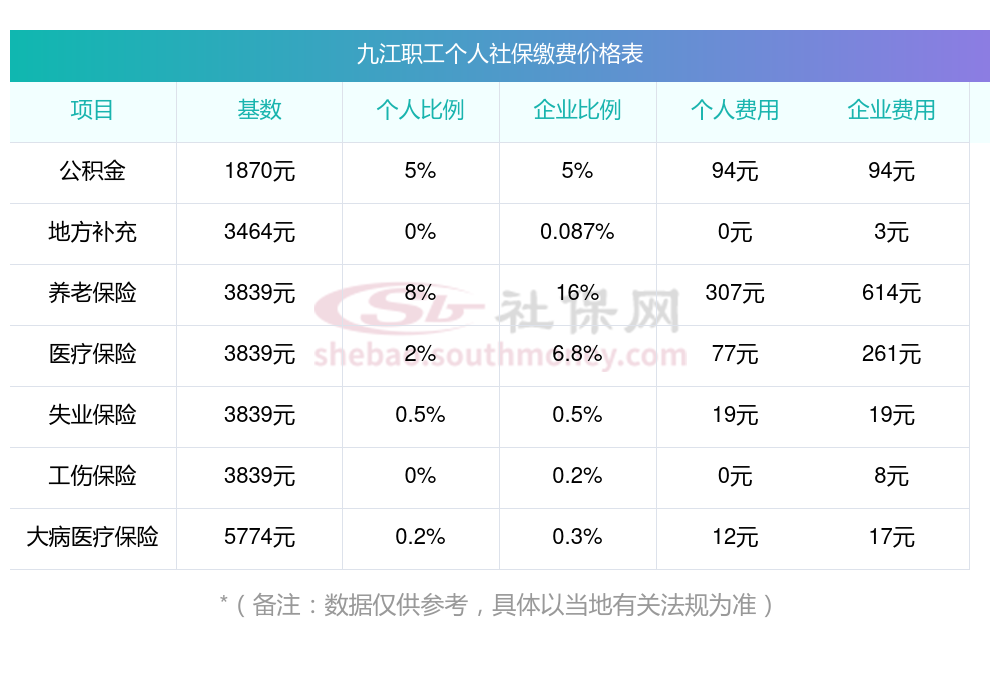 2025九江社保缴费标准一览表?新社通app-社保缴费查询工具提供的最新数据如下: