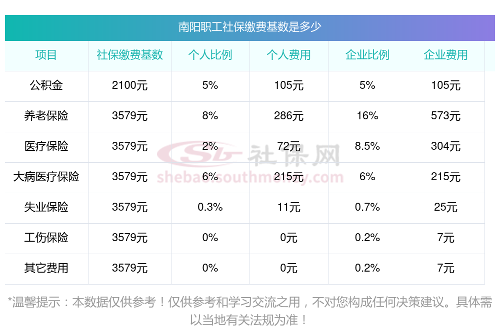 2025年南阳社保缴费最低基数及个人和单位具体是多少钱?下表是2025年南阳社保费用明细参考,新社通app-社保缴费查询工具提供的最新数据如下: