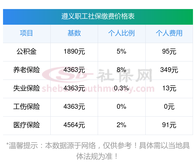 社保缴纳比例一览,社保公司和个人各交多少?下表是2023-2024年遵义社保费用明细参考,新社通app-社保缴费查询工具提供的最新数据如下: