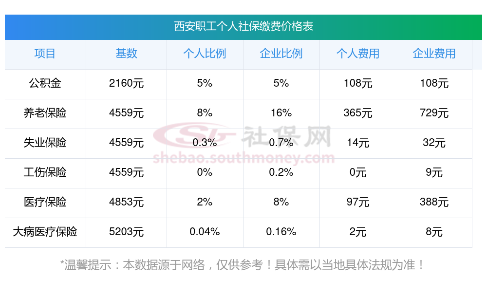 2025社保交多少钱?下表是2025年西安社保费用明细参考,新社通app-社保缴费查询工具提供的最新数据如下: