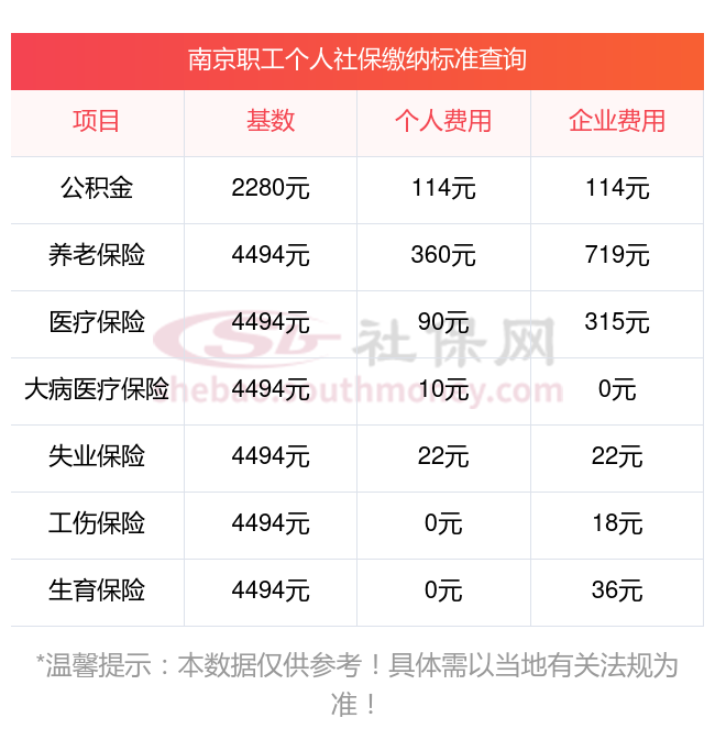 2025社保交多少钱?下表是2025年南京社保费用明细参考,新社通app-社保缴费查询工具提供的最新数据如下: