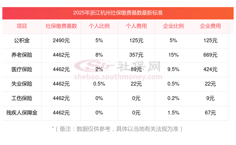 浙江杭州五险一金交多少钱一个月?下表是2024-2025年浙江杭州社保费用明细参考,新社通app-社保缴费查询工具提供的最新数据如下: