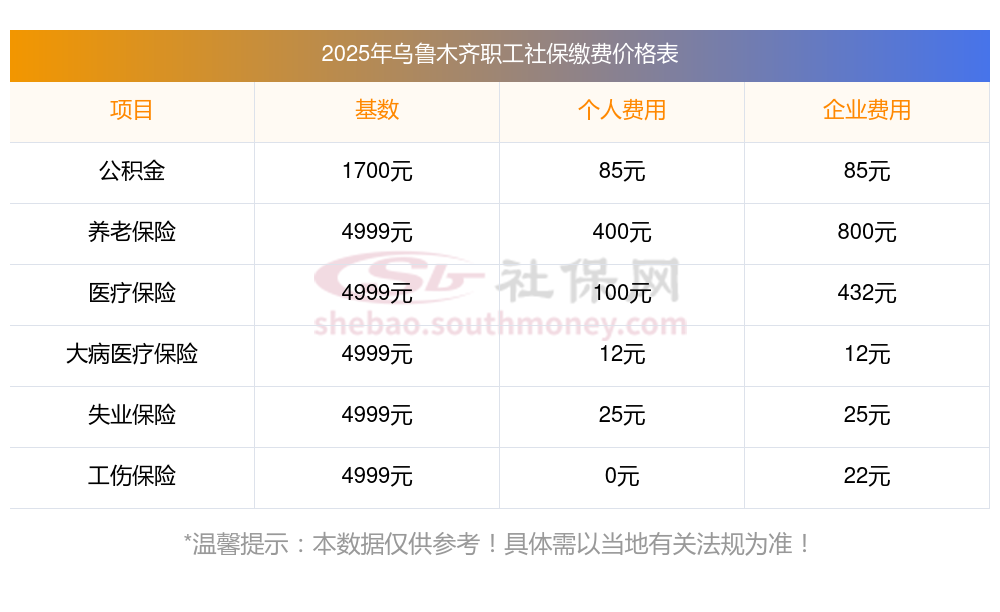 乌鲁木齐社保多少钱一个月?下面和新社君一起来看看乌鲁木齐最低标准社保费用明细参考,新社通app-社保缴费查询工具提供的最新数据如下: