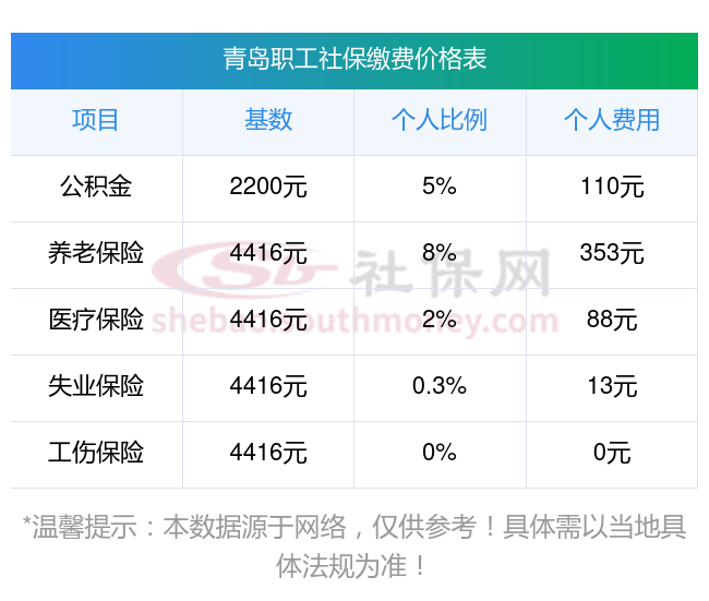 2025社保交多少钱?下表是2025年青岛社保费用明细参考,新社通app-社保缴费查询工具提供的最新数据如下: