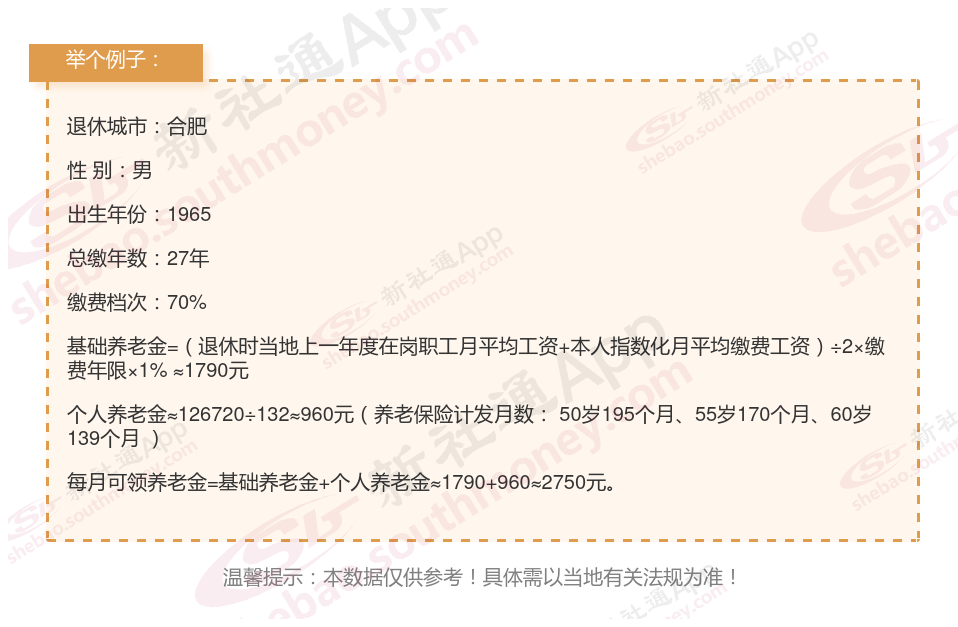 个人档案:男性,1965年出生,合肥退休职工,社保缴费27载,档次70%。