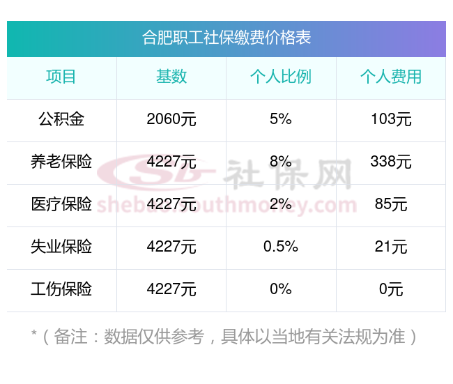 合肥五险一金交多少钱一个月?下表是2024-2025年合肥社保费用明细参考,新社通app-社保缴费查询工具提供的最新数据如下: