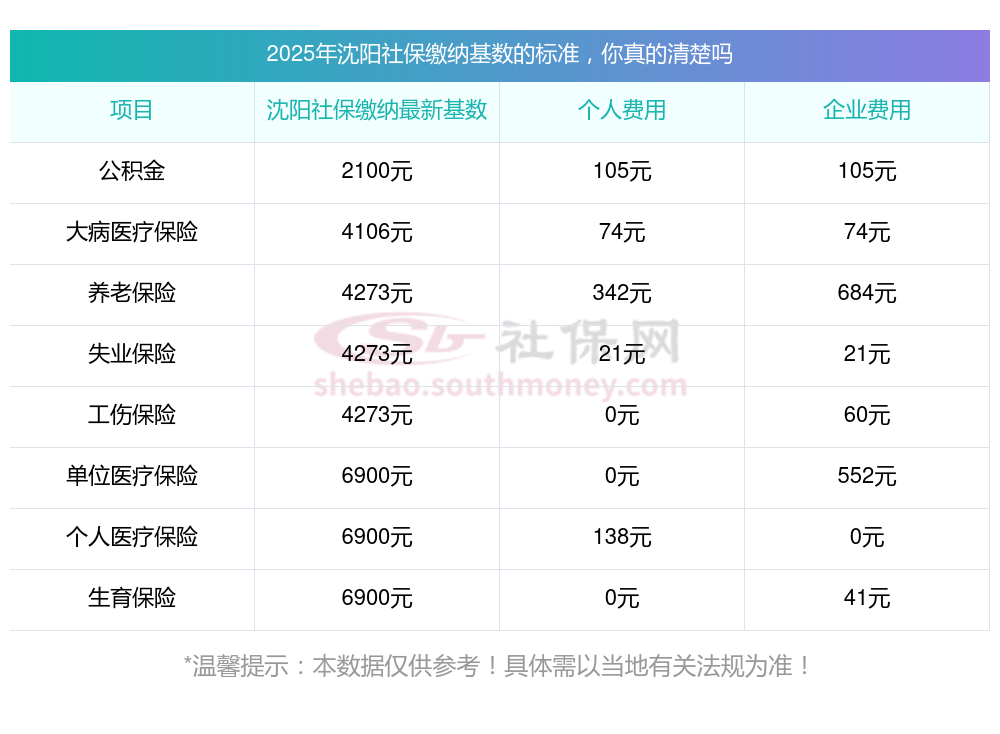 根据新社通app-社保缴费查询工具提供的最新数据,沈阳地区2025年的社保缴费标准已经确定。以下是各项保险的缴费比例及相应金额(基于一定的缴费基数)的详细说明: