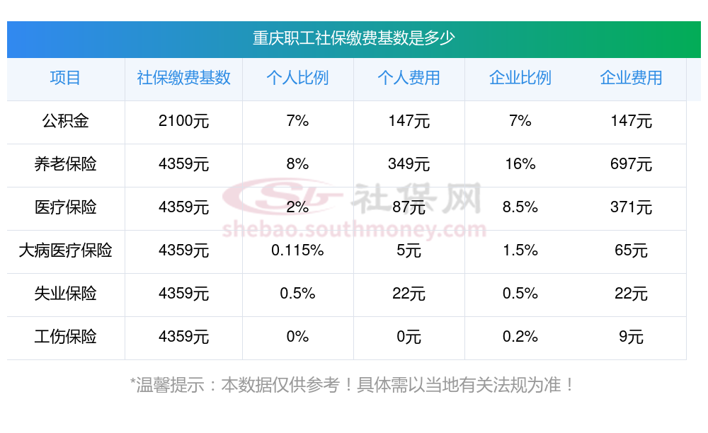 2025年重庆社保缴纳比例,2025年重庆社保缴费多少钱?下表是2024-2025年重庆社保费用明细参考,新社通app-社保缴费查询工具提供的最新数据如下: