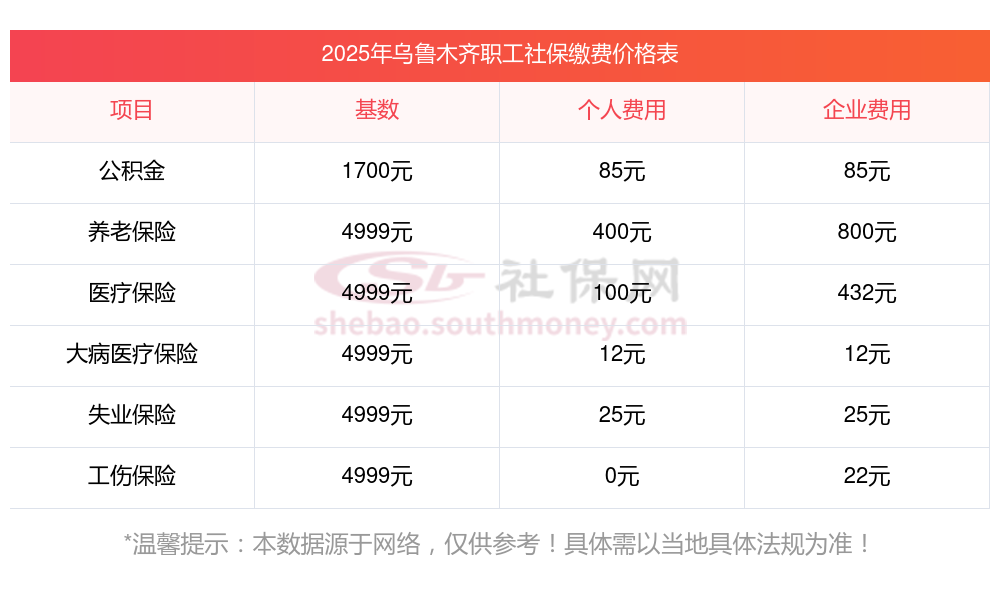 社保缴纳比例一览,社保公司和个人各交多少?下表是2023-2024年乌鲁木齐社保费用明细参考,新社通app-社保缴费查询工具提供的最新数据如下: