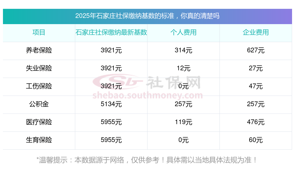 石家庄五险一金交多少钱一个月?下面和新社通-app小编一起来看看2024-2025年石家庄最低标准社保费用明细参考,新社通app-社保缴费查询工具提供的最新数据如下:
