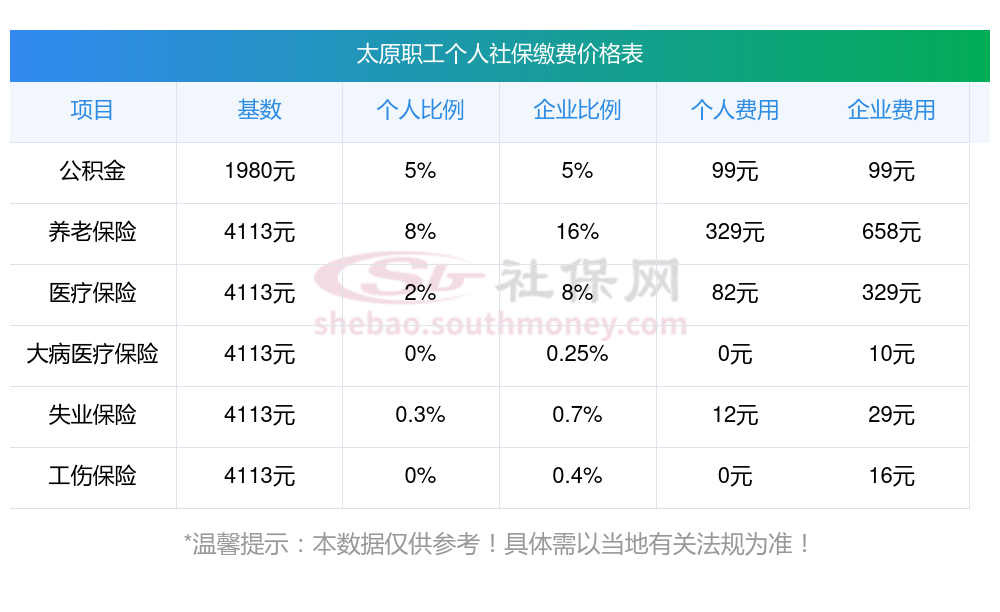 太原社保一个月交多少钱,个人缴纳多少钱一个月?下面和新社小编一起来看看太原最低标准社保费用明细参考,新社通app-社保缴费查询工具提供的最新数据如下: