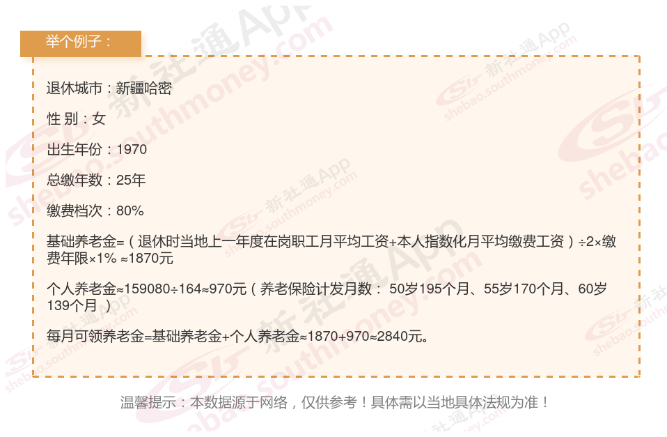 个人档案:女性,1970年出生,新疆哈密退休职工,社保缴费25载,档次80%。