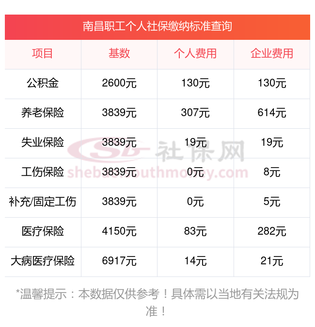 南昌社保多少钱一个月?下面和新社君一起来看看2025年南昌最低标准社保费用明细参考,新社通app-社保缴费查询工具提供的最新数据如下: