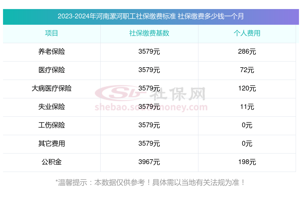 2025年河南漯河社保缴费多少钱?下表是2024-2025年河南漯河社保费用明细参考,新社通app-社保缴费查询工具提供的最新数据如下: