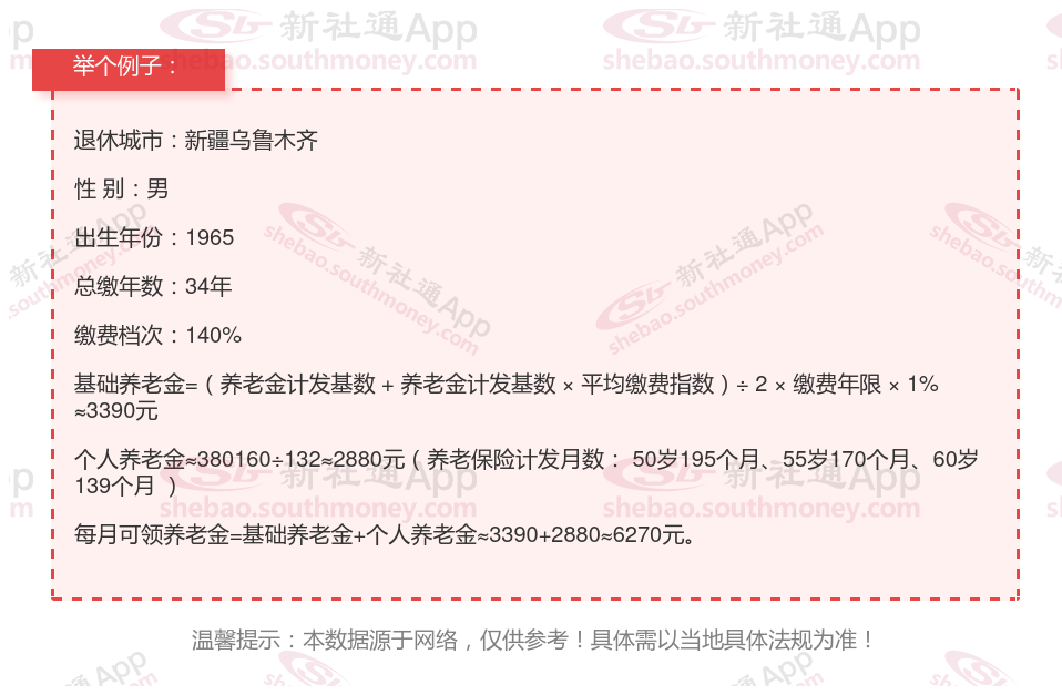 个人档案:男性,1965年出生,新疆乌鲁木齐退休职工,社保缴费34载,档次140%。